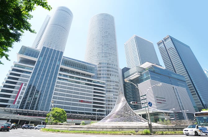 名古屋事務所は、JR名古屋駅広小路口より徒歩7分、ミヤコ地下街4出口より徒歩4分の場所にあります。このようなアクセスの良さもあり、愛知県にとどまらず、東海地方全域、石川・富山県などの北陸地方のお客様からも多くのご依頼をいただいております。お電話やオンラインでの相談も可能ですので、お気軽にお問い合わせください。