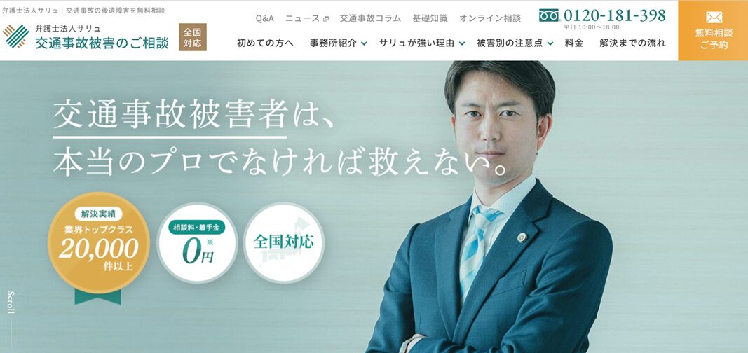 弁護士法人サリュは、創業20年を迎え、交通事故の被害者側専門の法律事務所として累計20,000件以上の解決実績があります。所属弁護士の多くが1人あたり500件~1000件以上の交通事故解決実績があり、あらゆる交通事故被害者を救済してきました。その確かな実績とノウハウで、あなたのために力を尽くします。